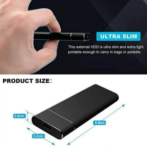 Ultra-Thin External Hard Drive This portable external hard drive adopts durable aluminum alloy body with matte finish, which provides excellent heat dissipation warmth, shock resistance and comfortable hand feeling for greater safety and ease of use. The ultra——thin body fits easily into various pockets and is so portable that you will have your favorite photos, videos, music or more with you!